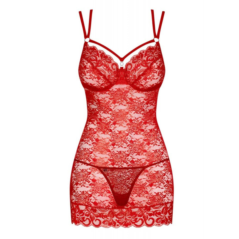 Obsessive 860-CHE-3 chemise & thong red  S/M
