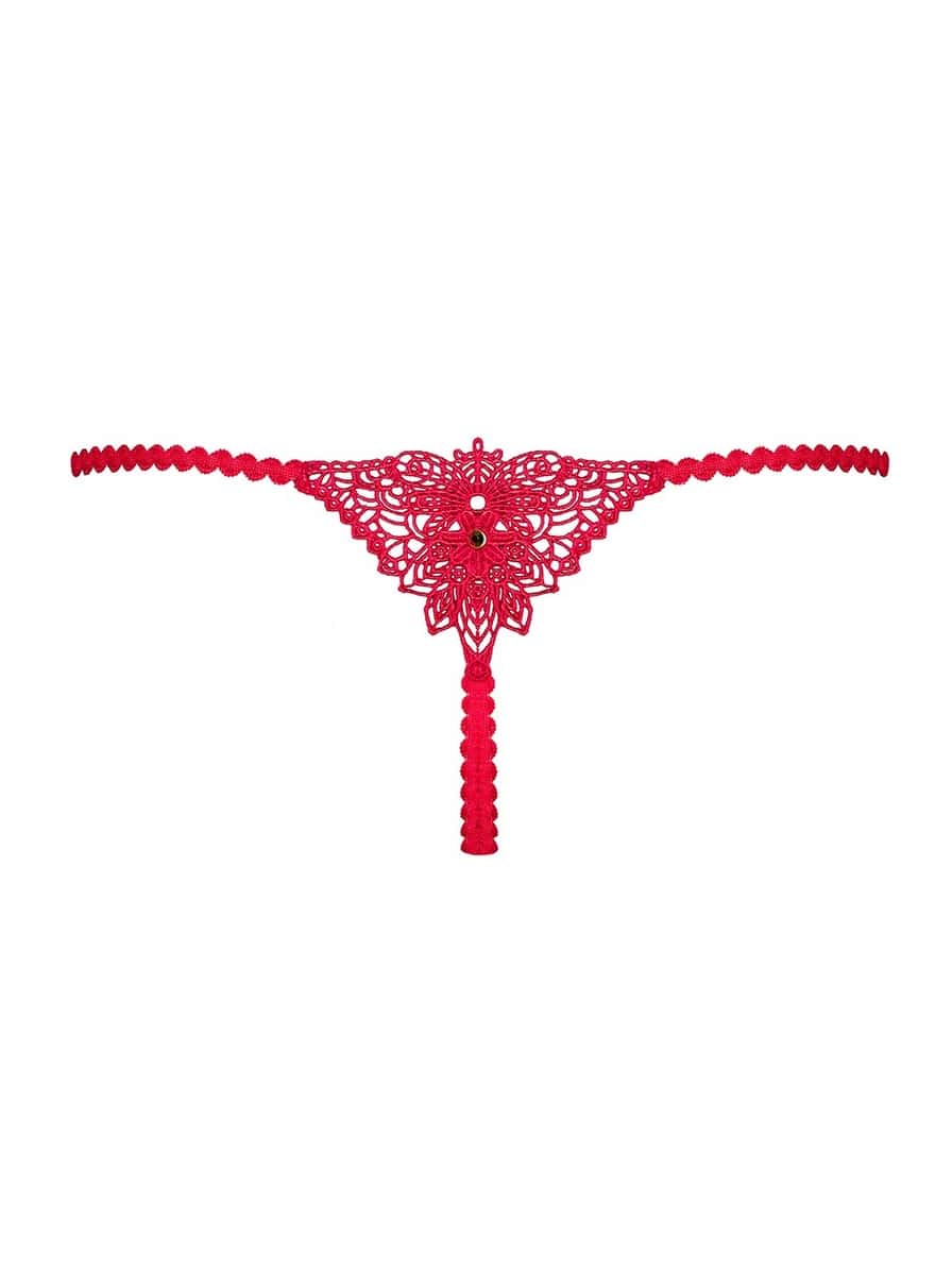 Piros színű, falatnyi csipkés tanga.